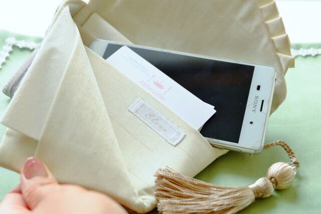 また、ポケットはスマホが入るサイズなので、ちょっとお出かけの時などにクラッチバック代わりにも使えます。(私は出張時に宿泊先の朝食を食べに行くときに懐紙入れにスマホとお部屋の鍵を入れて行きます)